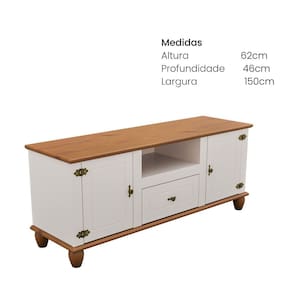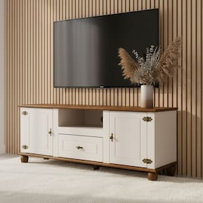 O rack com 2 portas e 1 gaveta une funcionalidade, qualidade e design encantador. Estruturado em MDF resistente, com tampo, base e pés em madeira de pinus, ele transmite robustez e rusticidade, valorizando qualquer ambiente. As portas possuem detalhes que destacam o design, enquanto a gaveta conta com corrediça telescópica, oferecendo praticidade no dia a dia. As dobradiças e puxadores externos são cuidadosamente acabados, adicionando charme e sofisticação ao móvel. Um rack pensado para unir estilo, organização e personalidade em cada detalhe. Produto Montado: Sim Acabamento: Pintura UV Acabamento da Gaveta: Pintura UV Acabamento da Porta: Pintura UV Acabamento da Prateleira: Pintura UV Acabamento dos Pés: Verniz Altura dos Pés: 10,5 cm Altura Máxima dos Pés: 10.5000 Ambiente Principal: Sala de Estar codigo_ean: 7900288252470 Complexidade da Montagem: Média: pode ser montado por mais de uma pessoa e/ou necessite de maior conhecimento para montagem Cor: Off White/ Marrom Cor da Porta: Off White Cor do Produto: Off White/ Marrom Cor Interna: Off White Escala de Brilho: Semi-Brilho Escala de Brilho da Gaveta: Semi-Brilho Escala de Brilho da Porta: Semi-Brilho Escala de Brilho da Prateleira: Semi-Brilho Espessura do Tampo: 25 mm Gaveta com Chave: Não Ideal para TVs até (Polegadas): 55 Itens Inclusos: 1 Rack, Kit Ferragens e Manual de Montagem Linha ou Coleção: Joy Manual de Montagem e Instalação: https://product-hub-prd.madeiramadeira.com.br/685115628/documents/531cfd31-be35-443b-84cd-e753a34d2d8f3237881543917588222403557.pdf Marca: Móveis Serpil Material da Gaveta: MDF Material da Porta: MDF Material da Prateleira: MDF Material do Puxador da Gaveta: Metal Material do Puxador da Porta: Metal Material dos Pés: Madeira Maciça Material Principal: MDF Necessita Montagem: Sim Origem do Produto: Nacional Peso: 42 kg Peso Máximo por Gaveta: 7 kg Possui Adega: Não Possui Espelho: Não Possui iluminação: Não Possui Passa Cabos: Sim Possui Pés: 05 Possui Portas: Sim Possui Prateleiras: Não Possui Vidro: Não Quantidade de Gavetas: 01 Gaveta Quantidade de Nichos: 01 Recomendações de Uso, Manutenção e Limpeza: Use um pano macio levemente umedecido. Não utilizar produtos abrasivos. Sapatas Niveladoras: Não Sistema de Montagem: Parafusos, Cavilhas, Minifix Tipo de Corrediça da Gaveta: Metálica Telescópica Tipo de Dobradiça/Corrediça da Porta: Metálica Tipo de Madeira Maciça dos Pés: Pinus Tipo de Porta: Abrir Tipo de Puxador da Gaveta: Externo Tipo de Puxador da Porta: Externo