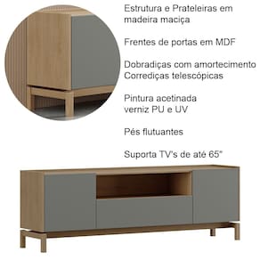 O Rack para Tv combina elegância e funcionalidade, com estrutura em madeira maciça de pinus de reflorestamento, garante resistência e durabilidade, suportando televisões de até 65 polegadas. Seu acabamento em pintura acetinada PU e UV realça a sofisticação da peça, enquanto os pés flutuantes proporcionam um design leve e moderno. Conta com 1 gaveta com corrediças telescópicas e frente em MDF, e 2 prateleiras internas em madeira maciça, oferecendo maior praticidade para organização. Com 180 cm de largura, é perfeito para compor a sala de estar, agregando charme e funcionalidade ao ambiente. Este móvel chegará em sua casa separado em 01 volume.