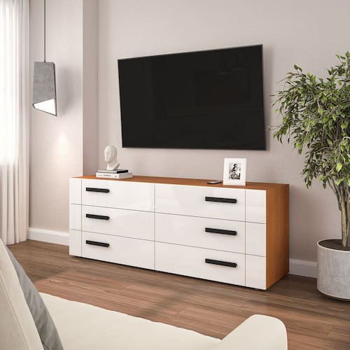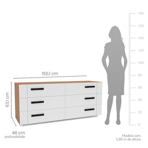 O rack 6 gavetas Lisboa, da Politorno Móveis, é uma opção sofisticada e funcional para a sua sala de estar. Com 63,1 cm de altura, 150,1 cm de largura e 46 cm de profundidade, oferece amplo espaço de armazenamento para organizar eletrônicos, acessórios e objetos decorativos. Fabricado em MDP/MDF, com acabamento em pintura UV, o rack garante resistência e durabilidade. Seu design atemporal e elegante combina facilmente com diferentes estilos de decoração, trazendo um toque refinado ao ambiente. As gavetas possuem corrediças telescópicas, que proporcionam deslizamento suave, e os puxadores externos facilitam o manuseio. Perfeito para quem busca qualidade, praticidade e sofisticação na sala de estar. Produto Montado: Sim Acabamento: Pintura UV Acabamento da Gaveta: Pintura UV Ambiente Principal: Sala de Estar codigo_ean: 7900288247254 Complexidade da Montagem: Média: pode ser montado por mais de uma pessoa e/ou necessite de maior conhecimento para montagem Cor: Branco Cor do Produto: Branco Cor Interna: Freijó Escala de Brilho: Semi-Fosco Espessura do Tampo: 150 mm Gaveta com Chave: Não Ideal para TVs até (Polegadas): 65 Itens Inclusos: 1 Rack, Kit Ferragens, Manual de Montagem e Termo de Garantia Linha ou Coleção: Lisboa Manual de Montagem e Instalação: https://product-hub-prd.madeiramadeira.com.br/386561597/documents/52237d08-f805-4758-8e71-b4fb8c69f1773252170622417593225789103.pdf Marca: Politorno Material da Gaveta: MDP Material dos Pés: Plástico Material Principal: MDP Necessita Montagem: Sim Peso: 47,19 kg Peso Máximo por Gaveta: 3 kg Possui Espelho: Não Possui iluminação: Não Possui Passa Cabos: Não Possui Pés: 06 Possui Portas: Não Possui Prateleiras: Não Possui Vidro: Não Recomendações de Uso, Manutenção e Limpeza: Utilize um pano macio umedecido com água e sabão neutro, seguido de pano seco. Não utilize produtos químicos ou abrasivos para limpeza, pois estes danificam o revestimento do móvel. Sapatas Niveladoras: Sim Sistema de Montagem: Cavilha, Parafuso, Minifix e prego. Tipo de Corrediça da Gaveta: Metálica Telescópica Tipo de Puxador da Gaveta: Externo Marca: Não Informado