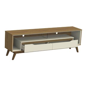 Rack para Tv 65 Polegadas com Led 175cm Duo Pés Madeira Retrô Freijo/ Off White - Marrom