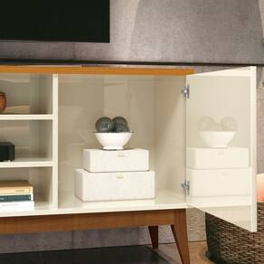 O Rack Titan foi feito especialmente para aqueles que querem deixar um estilo belo e único em seu ambiente. Possui espaços para deixar aparelhos eletrônicos e também podem ser utilizados para deixar livros ou demais utensílios, retratos e peças decorativas também combinam muito bem com esse belo rack. Conta ainda com duas portas articuladas, permetindo uma maior organização de seus objetos, este lindo produto tem pés de madeira maciça com um design incrivel complementanndo sua forma cleam e elegante. Produto Montado: Sim Acabamento: Pintura UV Acabamento da Porta: Pintura UV Acabamento da Prateleira: Pintura UV Acabamento dos Pés: Pintura Altura dos Pés: 20 cm Altura Máxima dos Pés: 20.0000 Ambiente Principal: Sala de Estar codigo_ean: 7900288165695 Complexidade da Montagem: Média: pode ser montado por mais de uma pessoa e/ou necessite de maior conhecimento para montagem Cor: Off White / Cedro Cor do Produto: Off White / Cedro Escala de Brilho: Brilhante Escala de Brilho da Porta: Brilhante Escala de Brilho da Prateleira: Brilhante Espessura do Tampo: 25 mm Ideal para TVs até (Polegadas): 65 Itens Inclusos: 1 Rack, Kit Ferragens e Manual de Montagem Linha ou Coleção: Titan Manual de Especificação Técnica: https://product-hub-prd.madeiramadeira.com.br/835147818/documents/54484d42-f932-4af0-a1d4-642e14e599c82879573610717456080686866.pdf Manual de Montagem e Instalação: https://product-hub-prd.madeiramadeira.com.br/835147818/documents/e64a8f87-0857-43b4-a311-bb5e7ec35e704d67724917c864477racktitan.pdf Marca: EDN Móveis Material da Porta: MDP Material da Prateleira: MDP Material do Puxador da Porta: MDP Material dos Pés: Madeira Maciça Material Principal: MDP Necessita Montagem: Sim Origem do Produto: Nacional Peso: 33,19 kg Peso Máximo por Prateleira: 3 kg Possui Adega: Não Possui Espelho: Não Possui iluminação: Não Possui Passa Cabos: Sim Possui Pés: 04 Possui Portas: Sim Possui Prateleiras: Sim Possui Vidro: Não Recomendações de Uso, Manutenção e Limpeza: Limpar somente com pano levemente umedecido com água e sabão neutro Sapatas Niveladoras: Não Sistema de Montagem: Parafusos, cavilhas e girofix Tipo de Dobradiça/Corrediça da Porta: Metálica Tipo de Madeira Maciça dos Pés: Pinus Tipo de Porta: Bater Tipo de Puxador da Porta: Embutido
