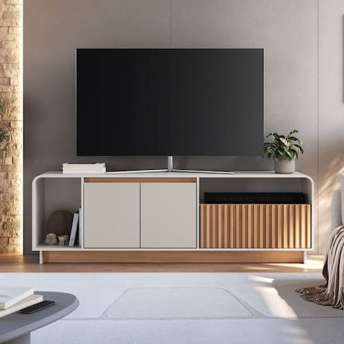 O Rack Arizona é uma peça que combina sofisticação e funcionalidade, ideal para salas de estar modernas e aconchegantes. O acabamento ripado confere um visual contemporâneo e elegante, destacando-se como elemento decorativo no ambiente. Conta com uma gaveta com corrediças telescópicas, que proporcionam abertura suave e total, facilitando o acesso ao conteúdo interno além de possuir dobradiça com amortecimento que ajuda a evitar impactos ao fechar, aumentando a durabilidade do móvel. Suas medidas são 62,5 cm de Altura 195 cm de largura e 38,5 cm de profundidade. Produto Montado: Sim Acabamento: Finish Foil Acabamento da Gaveta: Finish Foil Acabamento da Porta: Finish Foil Ambiente Principal: Sala de Estar codigo_ean: 7900288255815 Complexidade da Montagem: Baixa: pode ser montado por uma pessoa sozinha Cor: Freijó/Off White Cor da Porta: Off White Cor do Produto: Freijó/Off White Cor Flex: Não Cor Interna: Freijó Escala de Brilho: Fosco Escala de Brilho da Porta: Fosco Espessura do Tampo: 15 mm Gaveta com Chave: Não Ideal para TVs até (Polegadas): 65 Itens Inclusos: 1 Rack, Kit Ferragens e Manual de Montagem QR Code Linha ou Coleção: Arizona Manual de Especificação Técnica: https://product-hub-prd.madeiramadeira.com.br/115515364/documents/17692382-5e93-499e-924b-03ac9339029a3267161266217599510493584.pdf Manual de Montagem e Instalação: https://product-hub-prd.madeiramadeira.com.br/115515364/documents/11ee00a5-48e1-4935-b131-c3d25929a25a3267160266217599510414101.pdf Marca: j carvalho Material da Gaveta: MDP Material da Porta: MDP Material dos Pés: MDP Material Principal: MDP Necessita Montagem: Sim Peso: 41,6 kg Peso Máximo por Gaveta: 5 kg Possui Espelho: Não Possui iluminação: Não Possui Passa Cabos: Não Possui Pés: Rodapé Possui Prateleiras: Não Possui Vidro: Não Quantidade de Gavetas: 01 Gaveta Recomendações de Uso, Manutenção e Limpeza: Flanela umedecida Sapatas Niveladoras: Sim Sistema de Montagem: parafusos Tipo de Corrediça da Gaveta: Metálica Telescópica Tipo de Porta: Bater Tipo de Puxador da Gaveta: Embutido Tipo de Puxador da Porta: Embutido