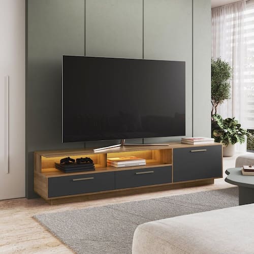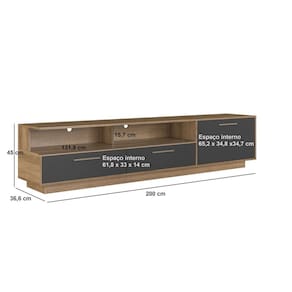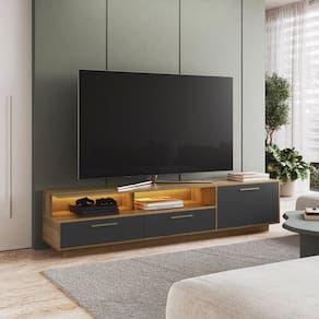 Otimizar espaços é uma das metas da Art In Móveis, por isso criamos o Rack para TV com iluminação led Ravenna. Este produto foi produzido em excelente material MDP com acabamento Finish Foil fosco. Uma rack moderno e contemporâneo que irá decorar ainda mais a sua sala. Este rack se utiliza de iluminação em led, corrediça telescópica e pistão a gás. Cada nova ideia é uma mistura de criatividade, funcionalidade e muita dedicação com os produtos Art In Móveis Produto Montado: Sim Acabamento: Finish Foil Acabamento da Gaveta: Finish Foil Acabamento da Porta: Finish Foil Acompanha Lâmpada: 01 Ambiente Principal: Sala de Estar codigo_ean: 7899766517739 Complexidade da Montagem: Média: pode ser montado por mais de uma pessoa e/ou necessite de maior conhecimento para montagem Cor: Grafite/Mel Cor da Porta: Preto Cor do Produto: Grafite/Mel Cor Flex: Não Cor Interna: Mel Escala de Brilho: Fosco Escala de Brilho da Gaveta: Fosco Escala de Brilho da Porta: Fosco Espessura do Tampo: 15 mm Gaveta com Chave: Não Ideal para TVs até (Polegadas): 75 Itens Inclusos: 1 Rack, Kit Ferragem e Manual de Montagem Linha ou Coleção: Sala de Estar Manual de Montagem e Instalação: https://product-hub-prd.madeiramadeira.com.br/872737736/documents/2e73b330-7983-4b08-8774-d442f9f078043163003522517562475679501.pdf Marca: Art in Móveis Material da Gaveta: MDP Material da Porta: MDP Material do Puxador da Gaveta: PVC Material do Puxador da Porta: PVC Material Principal: MDP Modelo de Porta: Porta Lisa Montagem Flex: Não Necessita Montagem: Sim Origem do Produto: Nacional Peso: 36,3 kg Peso Máximo por Gaveta: 5 kg Possui Adega: Não Possui Espelho: Não Possui iluminação: Sim Possui Passa Cabos: Sim Possui Pés: Não Possui Portas: Sim Possui Prateleiras: Não Possui Vidro: Não Quantidade de Gavetas: 02 Gavetas Recomendações de Uso, Manutenção e Limpeza: Para a limpeza do móvel utilizar pano levemente umedecido Sistema de Montagem: Parafusos, cavilhas e minifix Tipo de Corrediça da Gaveta: Metálica Telescópica Tipo de Dobradiça/Corrediça da Porta: Metálica Tipo de Porta: Basculante Tipo de Puxador da Gaveta: Externo Tipo de Puxador da Porta: Externo