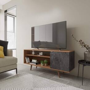 Rack Para TV até 42`` Com 1 Porta Lateral R1486 Amêndoa/Mármore Lunar - Bege Claro
