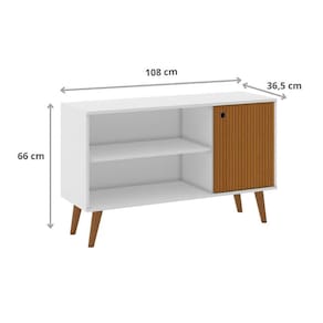 O Rack Retrô é a escolha certa para quem busca funcionalidade e estilo em um móvel compacto. Ideal para acomodar TVs de até 43 polegadas, oferecendo também espaço para organizar eletrônicos, livros, objetos decorativos ou acessórios do dia a dia. Conta com duas prateleiras abertas para fácil acesso e uma porta que ajuda a manter o ambiente visualmente limpo e organizado. Fabricado em MDP de qualidade, combina resistência, praticidade e um design atual que se adapta a decoração do seu ambiente. CARACTERÍSTICAS TÉCNICAS: - Estrutura em MDP de 15 mm - Acabamento Fosco na cor Branco e Ripado - Porta com Dobradiças Metálicas - Puxador tipo Furo - Dispõe de 2 Nichos e 1 Prateleira - Pés Fixo em Plástico - Suporta até 25 kg INFORMAÇÕES TÉCNICAS: Altura: 66 cm Largura: 108 cm Profundidade: 36,5 cm Peso: 14 kg INFORMAÇÕES ADICIONAIS: -ATENÇÃO: Não trabalhamos e não nos responsabilizamos pela montagem do móvel. Antes da montagem conferir se o produto está de acordo com o que comprou, produto montado e danificado pela montagem não será aceito troca. -As imagens ambientadas são meramente ilustrativas e podem apresentar itens que não compõe o produto. As cores do produto podem variar de acordo com o monitor, a iluminação do ambiente ou sua percepção visual. -Limpeza: Deve ser feita com pano macio e seco ou levemente umedecido com água e sabão neutro. Não devem ser utilizados abrasivos como palha de aço e objetos cortantes. Garantia para defeitos de fabricação conforme Código de Defesa do Consumidor.