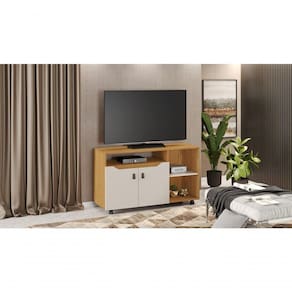Rack Para Tv Até 49 Polegadas Com 2 Portas Seleto - Jcm Movelaria Cinamomo/off White Sabemos que a sala de estar é um ambiente para diversão e relaxamento. Por isso nada melhor do que apostar na praticidade e elegância do Rack Seleto. Produto compacto, possui portas com dobradiça de pressão, rodízios, puxadores em couro. Recomenda-se TV até 49. Ficha técnica do Produto