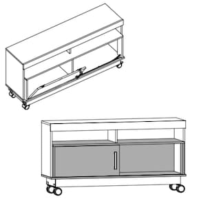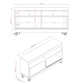 Características: 1 Portas deslizantes 2 Prateleiras Acabamento pintura UV Estrutura em MDP Painéis em MDP de 15mm com pintura DIP Peso total suportado 50 kg Puxadores poliestireno cromado Rodízios em poliestireno Sistema de fixação Girofix Suporte para TV de até 50 polegadas