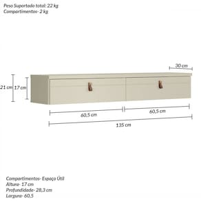 - Medidas do Rack (A x L x P): 21 X 135 X 30 Cm