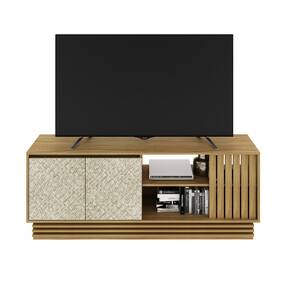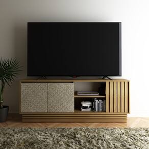 Destaques do Produto: Acabamento frontal com impressão palha texturizada Detalhes laterais ripados que valorizam o design Duas prateleiras para organização versátil Estrutura em MDP com acabamento BP texturizado e pintura UV Ideal para televisores de até 52”