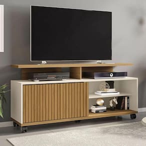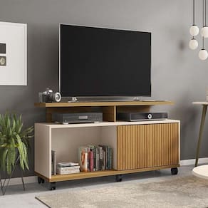 O Rack Topázio da Bechara traz para o seu ambiente elegância e sofisticação. Com sua estrutura em MDP de 15 e 25mm, suporta TVs de até 52 polegadas. Possui porta de correr trazendo modernidade ao produto.