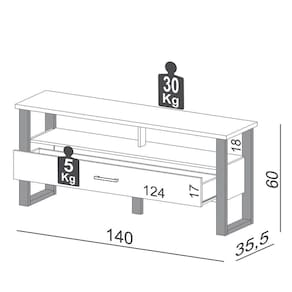 Peso Suportado: 30 Kg no tampo e 5 Kg na gaveta.