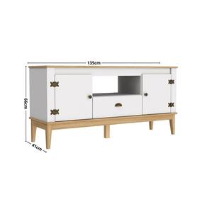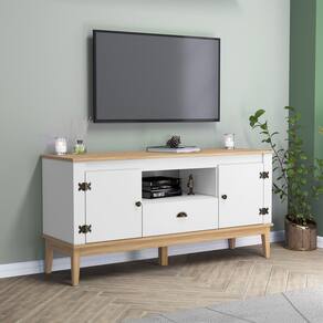 Características: 1 Gaveta 2 Portas Acabamento em pintura UV Corrediça metálica Estrutura em MDP 15mm Estrutura costas MDF 3mm Pés de madeira Maciça Puxadores em zamac Suportam até 30kg Suporta Tvs de até 55 polegadas