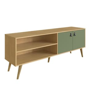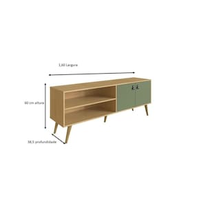 Rack para TV até 55 Polegadas 2 Portas e Pés de Madeira Amber Genialflex Savana/Alecrim - Bege