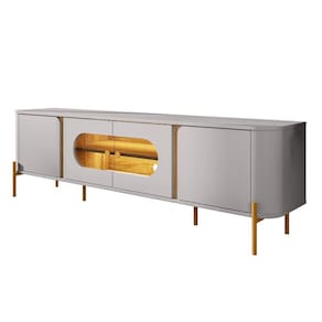 Rack para TV Até 55 Polegadas com LED e Vidro Reflecta 4 Portas com Pés Juquehy Bechara, combina sofisticação e funcionalidade com sua dupla iluminação de LED, que destaca os detalhes do ambiente de forma suave. Os vidros reflecta trazem um toque moderno e elegante, equilibrando privacidade e estética. Sua estrutura é durável, com pés em aço pintados de epóxi anti ferrugem, resistentes ao tempo e à umidade. O design orgânico, com linhas fluidas, se adapta a diversos estilos de decoração, enquanto as dobradiças soft close garantem um fechamento silencioso e suave, proporcionando conforto no uso diário.