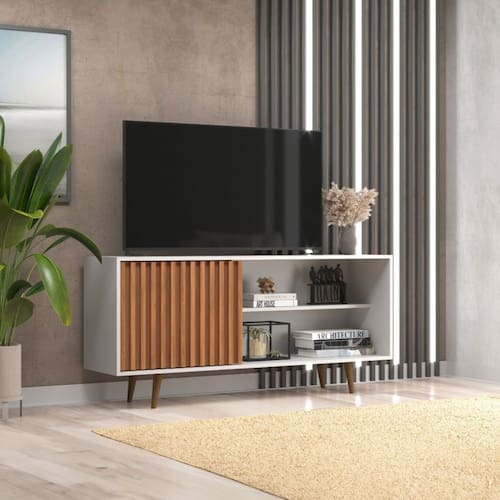 O(a) Rack para TV Até 55 Polegadas San Diego 1 Porta Ripado Branco/Freijó - Jcarvalho é produzido em MDP na escala de brilho Fosco, e possui um grau de dificuldade de montagem: Médio.