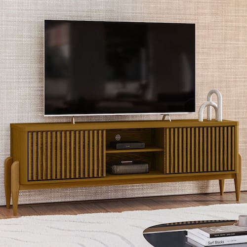 O(a) Rack para TV Até 55 Polegadas Sereno 2 Portas 1 Prateleira Cedro - Olivar Móveis é produzido em MDP/MDF na escala de brilho Semi-Brilho, e possui um grau de dificuldade de montagem: Médio.