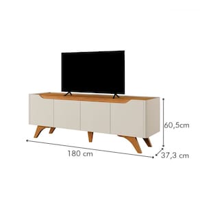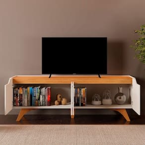O(a) Rack para TV Até 58 Polegadas Grecia 4 Portas Off White/Naturalle - Mavaular é produzido em MDF e MDP na escala de brilho Fosco, e possui um grau de dificuldade de montagem: Médio.