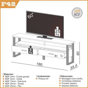 Características: Estrutura 100% MDF Acabamento em Pintura UV 02 Gavetas com Corrediças Metálicas Puxadores Plásticos Sapatas Plásticas Estilo Estilo Industrial Ideal para TV até 60 Polegadas
