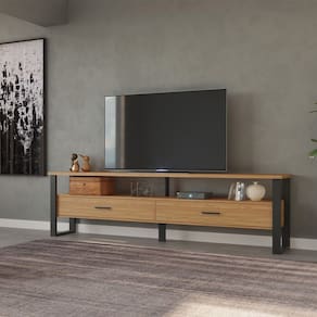 Características: Estrutura 100% MDF Acabamento em Pintura UV 02 Gavetas com Corrediças Metálicas Puxadores Plásticos Sapatas Plásticas Estilo Estilo Industrial Ideal para TV até 60 Polegadas