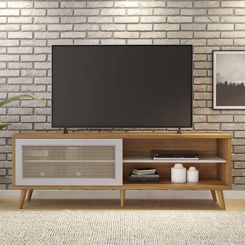 Com um design retrô, a Bancada NT 1175 da Notável Móveis traz toda a elegância para dentro da sua sala, contando com pés palito, porta com moldura MDF e um lindo acabamento em Tela PVC que vai dar um toque especial para o seu ambiente! Também conta com 2 prateleiras internas e comporta TV's de até 60". PÉS RETRÔ, PORTAS COM MOLDURA EM MDF E TELA PVC, ESPAÇO PARA ELETRÔNICOS, PRATELEIRA INTERNA Acabamento: Pintura UV Acabamento da Porta: Pintura UV Acabamento da Prateleira: Pintura UV Altura dos Pés: 15,5 cm Ambiente Principal: Sala de Estar Complexidade da Montagem: Média: pode ser montado por mais de uma pessoa e/ou necessite de maior conhecimento para montagem Cor: Freijo Trend / Off White Cor do Produto: Freijo Trend / Off White Cor Interna: Freijo Escala de Brilho: Fosco Escala de Brilho da Porta: Semi-Brilho Escala de Brilho da Prateleira: Brilhante Ideal para TVs até (Polegadas): 60 Itens Inclusos: 1 bancada, Kit Ferragens e Manual de Montagem Linha ou Coleção: 2022 Manual de Montagem e Instalação: https://cdn2.madeiramadeira.com.br/atributo/moveis-notavel/1040075-bancada-nt1175-manual-de-montagem.pdf Material da Porta: MDP Material da Prateleira: MDP Material dos Pés: PVC Material Principal: MDP Necessita Montagem: Sim Origem do Produto: Nacional Peso: 31,58 kg Peso Máximo por Prateleira: 10 kg Possui Espelho: Não Possui Possui iluminação: Não Possui Pés: 05 Possui Portas: 01 Possui Prateleiras: 01 Possui Vidro: Não Recomendações de Uso, Manutenção e Limpeza: Para maior durabilidade, recomenda-se que a limpeza dos móveis seja feita da seguinte forma: Nas partes externas (portas, laterais e frente de gaveta) e internas, a limpeza deverá ser feita com pano limpo e levemente umedecido em água e sabão neutro. Em seguida, deverá ser passado um pano limpo e seco. Sapatas Niveladoras: Não Sistema de Montagem: Parafuso e mini fix Tipo de Porta: Correr Tipo de Puxador da Porta: Embutido