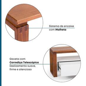 O Rack Craft é um móvel produzido em madeira maciça taeda e MDF, o que garante um produto sustentável e de ótima qualidade. Com estilo contemporâneo, é um item de design que trará sofisticação e elegância para o seu lar. Seus pés possuem um detalhe em malhete, que dá um toque todo especial ao produto e mostra o encaixe perfeito que a ARTEMOBILI tem. Com duas gavetas e um nicho superior, ele possui um amplo espaço para guardar e organizar objetos e utensílios. As gavetas possuem corrediças telescópicas que garantem a abertura total da gaveta, facilitando ainda mais o seu dia a dia. É um produto desmontado, de fácil montagem, que você pode montar sozinho, com amigos ou família, de maneira simples e divertida. Produto Montado: Sim Acabamento: Pintura UV Acabamento da Gaveta: Pintura UV Acabamento dos Pés: Pintura Altura dos Pés: 9,5 cm Altura Máxima dos Pés: 9.5000 Ambiente Principal: Sala de Estar codigo_ean: 7909903191668 Complexidade da Montagem: Média: pode ser montado por mais de uma pessoa e/ou necessite de maior conhecimento para montagem Cor: Branco/Garapa Cor do Produto: Branco/Garapa Cor Flex: Não Cor Interna: Branco Escala de Brilho: Fosco Escala de Brilho da Gaveta: Fosco Gaveta com Chave: Não Ideal para TVs até (Polegadas): 60 Itens Inclusos: 1 Rack, Kit Ferragens e Manual de Montagem Linha ou Coleção: Craft Manual de Montagem e Instalação: https://product-hub-prd.madeiramadeira.com.br/664100/documents/f6abc7dd-693f-4434-b884-5b1bc6814ad474742062556mp07757.pdf Material da Gaveta: MDF Material dos Pés: Madeira Maciça Material Principal: Madeira Maciça Montagem Flex: Não Necessita Montagem: Sim Origem do Produto: Nacional Peso: 30,4 kg Peso Máximo por Gaveta: 5 kg Possui Espelho: Não Possui iluminação: Não Possui Pés: 02 Possui Portas: Não Possui Prateleiras: Não Possui Vidro: Não Quantidade de Gavetas: 02 Gavetas Recomendações de Uso, Manutenção e Limpeza: Limpar com pano levemente umedecido com água. Evitar o uso de produtos químicos e ou materiais abrasivos. Sapatas Niveladoras: Não Sistema de Montagem: Parafusos, Minifix E Cavilhas. Tipo de Corrediça da Gaveta: Metálica Telescópica Tipo de Madeira Maciça: Pinus Tipo de Madeira Maciça dos Pés: Pinus Tipo de Puxador da Gaveta: Embutido