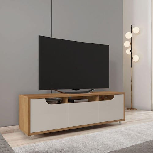 O Rack Jersey irá agregar muito mais charme e requinte a sua sala! Robusto, ele conta com estrutura elaborada em MDP de 25mm proporcionando ao produto resistência e qualidade como poucos no mercado oferecem. Possui 1 gaveta com corrediças telescópicas e 2 portas em MDP de 15mm usinado com designer curvo exclusivo. As divisórias e a prateleira são feitas em MDP de 15mm. Possui também 5 rodízios, dos quais 2 possuem trava. Sua pintura com acabamento Print Wood, patenteado e exclusivo Casa D garante ao produto maior qualidade e durabilidade como nenhuma no mercado possui. Acabamento: Pintura UV Acabamento da Gaveta: Pintura UV Acabamento da Porta: Pintura UV Ambiente Principal: Sala de Estar Complexidade da Montagem: Baixa: pode ser montado por uma pessoa sozinha Cor: Cedro/Off White Cor do Produto: Cedro/Off White Escala de Brilho: Semi-Brilho Escala de Brilho da Gaveta: Semi-Brilho Escala de Brilho da Porta: Semi-Brilho Gaveta com Chave: Não Ideal para TVs até (Polegadas): 60 Itens Inclusos: 1 Rack, kit ferragens e manual de montagem Linha ou Coleção: Versátile Manual de Montagem e Instalação: https://cdn2.madeiramadeira.com.br/atributo/casa-d/918043-011079-rack-jersey-1-6-404400000.pdf Material da Gaveta: MDF/MDP Material da Porta: MDP Material Principal: MDF/MDP Necessita Montagem: Sim Origem do Produto: Nacional Peso: 42,58 kg Peso Máximo por Gaveta: 3 kg Possui Espelho: Não Possui Possui iluminação: Não Possui Pés: Não Possui Portas: 02 Possui Prateleiras: Não Possui Vidro: Não Recomendações de Uso, Manutenção e Limpeza: Recomenda-se limpar o produto com flanela ou pano macio seco, não utilizar produtos abrasivos, desengordurantes, álcool ou solvente. Mantê-lo em lugar livre de umidade e/ou exposição direta ao sol. Rodízio com Trava: Sim Sistema de Montagem: Parafusos e Cavilhas. Tipo de Corrediça da Gaveta: Metálica Telescópica Tipo de Dobradiça/Corrediça da Porta: Alumínio Tipo de Porta: Bater Tipo de Puxador da Gaveta: Embutido Tipo de Puxador da Porta: Embutido