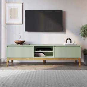 Com desenho moderno e descontraído, o rack Bento é uma ótima escolha para renovar a decoração de salas de estar e home cinemas. Sua estrutura é em MDF, acabamento em laca e madeira maciça de reflorestamento Pinus tingida com verniz, matérias-primas e acabamentos que garantem a resistência e a durabilidade ideais para o dia a dia. As prateleiras são perfeitas para acomodar os aparelhos eletrônicos e ainda conta com mais duas portas, ideais para organizar e armazenar objetos. Acabamento: Laca Acabamento da Porta: Laca Acabamento da Prateleira: Laca Acabamento dos Pés: Pintura Altura dos Pés: 16 cm Ambiente Principal: Sala de Estar Complexidade da Montagem: Baixa: pode ser montado por uma pessoa sozinha Cor: Sálvia/Amêndoa Cor do Produto: Sálvia/Amêndoa Cor Interna: Sálvia Escala de Brilho: Fosco Escala de Brilho da Porta: Fosco Escala de Brilho da Prateleira: Fosco Ideal para TVs até (Polegadas): 60 Itens Inclusos: 1 Rack, Kit de ferragens e Manual de montagem. Linha ou Coleção: Bento Manual de Montagem e Instalação: https://cdn2.madeiramadeira.com.br/atributo/artemobili/1058306-64625-mp13674.pdf Material da Porta: MDF Material da Prateleira: MDF Material do Puxador da Porta: MDF Material dos Pés: Madeira Maciça Material Principal: MDF Necessita Montagem: Sim Origem do Produto: Nacional Peso: 29 kg Peso Máximo por Prateleira: 5 kg Possui Espelho: Não Possui Possui iluminação: Não Possui Pés: 04 Possui Portas: 02 Possui Prateleiras: 01 Possui Vidro: Não Quantidade de Nichos: 02 Recomendações de Uso, Manutenção e Limpeza: Pano levemente umedecido. Não utilizar materiais abrasivos. Sapatas Niveladoras: Não Sistema de Montagem: Cavilha, parafuso, feltro, dobradiça e prego. Tipo de Dobradiça/Corrediça da Porta: Metálica Tipo de Madeira Maciça dos Pés: Pinus Tipo de Porta: Bater Tipo de Puxador da Porta: Embutido