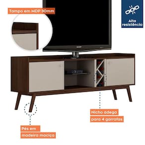 Informacoes complementares: Material: MDP Acabamento Pintura: UV Prateleiras: 1 Nichos: 4 Gavetas: Nao Pes: 4 Rodizios: Nao Material dos rodizios: Nao Material do Pe: Madeira macica Portas: 2 Tipo de porta: Bater Tipo de puxador da porta: Externo Tipo de dobradica da porta: Metalica de pressao Material do puxador da porta: ABS TV LCD e LED ate 60 Polegadas Espelhos: Nao Vidro: Sim Tipo de vidro: Incolor Passa cabos: Sim Ambiente: Sala de estar Espaco no Tampo para TV com pe 1800x380 mm (LxA) 1 prateleiras de vidro para aparelho 508 x 350 mm (LxP)