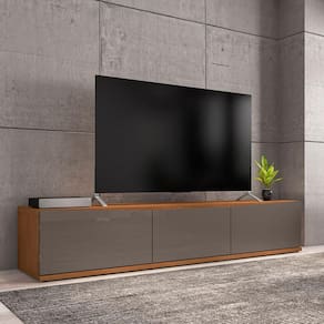 Modelo: Eros Material: MDP 37mm e MDF 15mm Acabamento: Print Wood - Soft PU Escala de brilho: Semi-brilho Tamanho de TV suportada: Até 60 polegadas Quantidade de portas: 2 Quantidade de gavetas: 1 Quantidade de pés: 8 Tipo de porta: Bater Tipo de pés: Sapatas niveladoras Tipo de corrediça: Telescópica Peso máximo suportado: 59 Kg Necessita montagem: Sim Necessita fixação na parede: Não Complexidade de montagem: Média Quantidade de volumes: 1