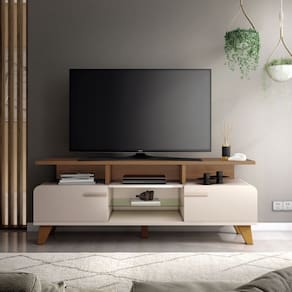 Caracter?sticas: Ideal para TV at? 60; 2 Portas basculantes com pist?o a g?s; 5 P?s em madeira; Prateleira de Vidro 6mm; Puxadores em Alum?nio; Peso suportado: 40 Kg Distribu?dos. Estrutura em MDF/MDP
