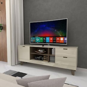 O(a) Rack para TV Até 60 Polegadas Oklahoma 1 Porta 2 Gavetas Off White/Carvalho - Pnr Móveis é produzido em MDF e MDP na escala de brilho Fosca com Textura, e possui um grau de dificuldade de montagem: Médio.