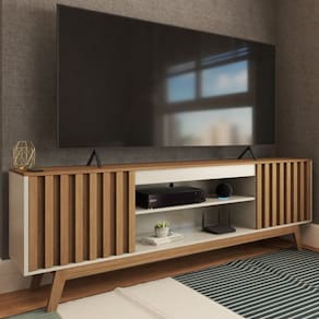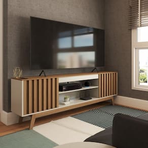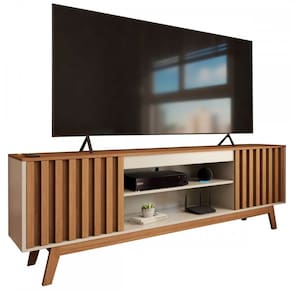 O(a) Rack para TV Até 60 Polegadas Ripado Seattle Retrô 2 Portas 1 Prateleira Off White/Freijó - Loja é produzido em MDP na escala de brilho Semi-Brilho, e possui um grau de dificuldade de montagem: Médio.