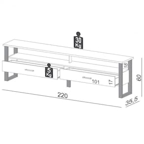 Peso Suportado: 30 Kg no tampo e 5 Kg por gaveta.