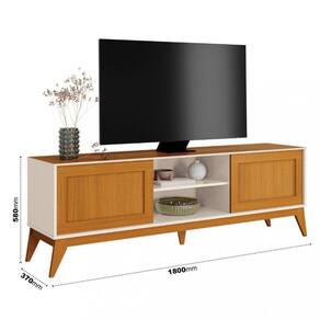 Características: Estrutura em MDP Tampo em MDF 2 Portas deslizantes Trilhos em ABS 1 Prateleira Pés em MDF Suporta TVs até 65 Polegadas