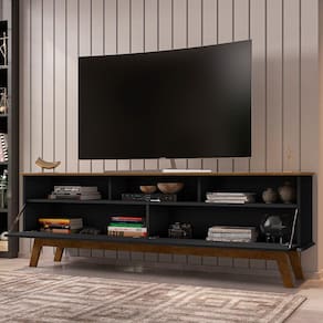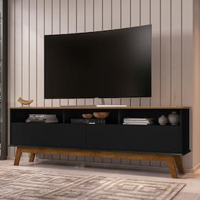 O Rack Elegant é a melhor escolha para sua sala! Com design retrô que irá encantar você. Ele possui tampo e base de MDF chanfrado em ângulo proporcionando ainda mais charme e requinte ao móvel! Seus pés são feitos de madeira maciça garantindo com isso ainda mais qualidade e resistência ao produto. Possui duas portas basculantes com dobradiças metálicas e amplo espaço interno. Suporta TVs de até 65 polegadas e seus amplos nichos são ideais para acomodar aparelhos eletrônicos, objetos de decoração, entre outros. Com tantas qualidades o Rack Elegant perfeito para sua sala!