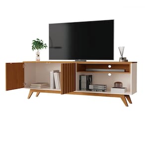 O(a) Rack para TV Até 65 Polegadas Buriti 2 Portas Ripado Off White/Freijó - Giga Móveis é produzido em MDF e MDP na escala de brilho Semi-Brilho, e possui um grau de dificuldade de montagem: Médio.