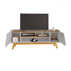 O(a) Rack para TV Até 65 Polegadas Mackenzie 2 Portas 1 Prateleira Off White/Cinamomo - Pnr Móveis é produzido em MDF e MDP na escala de brilho Brilhante, e possui um grau de dificuldade de montagem: Médio.