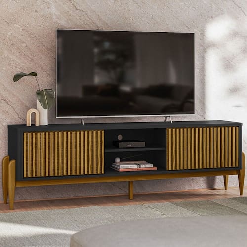 Rack para TV Até 65 Polegadas Sereno 2 Portas 1 Prateleira Preto/Cedro - Olivar Móveis - Rack para TV Olivar Móveis Sereno