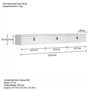 - Medidas do Rack (A x L x P): 21 X 179,5 X 30 Cm