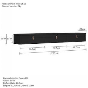 - Medidas do Rack (A x L x P): 21 X 179,5 X 30 Cm