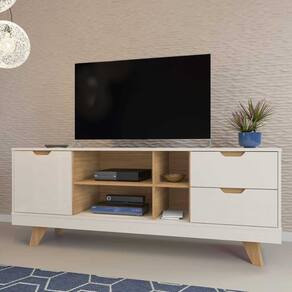 Rack Para Tv até 65" Michigan Com 2 Gavetas e 4 Nichos Off White/Carvalho -
