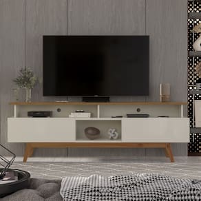 Além disso, os pés em madeira maciça não apenas proporcionam estabilidade e robustez ao rack, mas também adicionam um toque de sofisticação ao seu design, elevando o visual do ambiente. Ideal para acomodar TV até 70 polegadas, garantindo que você desfrute de seus programas favoritos com conforto. Trazendo praticidade, funcionalidade e beleza em um único móvel. Seja na sala de estar, no quarto ou em qualquer outro ambiente, este rack oferece o espaço de armazenamento necessário para organizar seus itens eletrônicos e decorativos, enquanto adiciona um toque de estilo à sua casa.