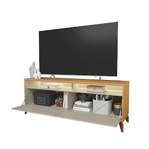 Rack para TV até 70 Polegadas com LED 2 Portas Dubai 16 Linea Brasil, é a definição de elegância e sofisticação para o seu ambiente. Com pés chanfrados em madeira maciça e iluminação em LED, ele se destaca por detalhes que fazem toda a diferença na decoração. Além de oferecer excelente funcionalidade, seu design moderno e acabamento impecável elevam o estilo do espaço, proporcionando um toque refinado e contemporâneo.