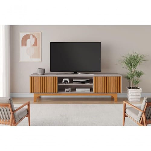 Perfeito para compor e organizar o seu ambiente, o Rack Trunfo, além do tampo espaçoso para acomodar sua televisão, conta com nicho para receber equipamentos eletrônicos ou itens decorativos e com compartimentos internos, em que você pode guardar objetos que quer manter sempre por perto. Tudo isso coroado pelo visual clássico em coloração sóbria, tornando fácil a tarefa de harmonizá-lo com o restante do mobiliário.
