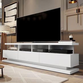 Rack para TV até 72 Polegadas 180cm com Rodízios 3 Gavetas 4 Nichos Vivare Giga Móveis Branco