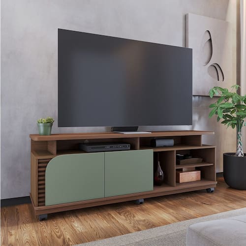 O Rack Bancada Jurerê é uma peça contemporânea e elegante, destacando-se pelos apliques ripados decorativos e pela porta de quina assimétrica arredondada. Seu tampo espaçoso e os nichos oferecem praticidade para armazenar aparelhos e decorações. Com amplo espaço para TVs de até 75 polegadas e rodízios inclusos para maior versatilidade, o Rack Jurerê é a escolha perfeita para transformar seu ambiente com estilo e funcionalidade. CARACTERÍSTICAS TÉCNICAS: - Produzido em MDP 12, 15 e 25mm, MDF de 15mm e HDF de 3 mm - Acabamento Fosco com Pintura UV - Tampo superior reforçado de 25mm - Portas com Dobradiça Metálica - Detalhe em Ripado e Cantos Arredondados - Pés em Rodízios Plásticos com 9 cm de Altura, sendo 2 com trava - Peso Suportado no Tampo de 35 kg - Peso Suportado na Prateleira 2kg - Ideal para TV até 75 Polegadas - Possui 2 Portas, 1 Prateleira e 5 Nichos INFORMAÇÕES TÉCNICAS: Altura: 62 cm Largura: 180 cm Profundidade: 39,3 cm Peso: 42,62 kg ITENS INCLUSO: - Rack Jurerê - Manual de Montagem - Kit de Ferragens INFORMAÇÕES ADICIONAIS: - Não realizamos a montagem do móvel e não nos responsabilizamos por ela. Verifique o produto antes de montá-lo. Produtos danificados na montagem não serão trocados. Montagem e instalação são por conta do comprador. - As imagens decorativas são ilustrativas e podem conter itens não inclusos. As cores do produto podem variar conforme o monitor, iluminação ou percepção visual. - Limpeza: Use um pano macio e seco ou levemente umedecido com água. Não utilize materiais abrasivos como palha de aço ou objetos cortantes. Garantia de 3 meses contra defeitos de fabricação conforme o Código de Defesa do Consumidor.