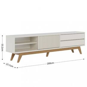 O Rack Veneza funde estilo contemporâneo e praticidade para criar um ambiente sofisticado e funcional. Equipada com 5 pés de madeira maciça e travas em MDF, esta peça oferece estabilidade e elegância em igual medida. Seus detalhes cuidadosamente elaborados incluem 2 gavetas com corrediças telescópicas, uma porta deslizante ripada que adiciona um toque de volume, e uma prateleira dedicada para aparelhos eletrônicos.