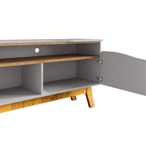 Rack para TV Até 75 Polegadas 2 Portas com Pés de Madeira Maciça Ilhabela Bechara - Cinza Claro