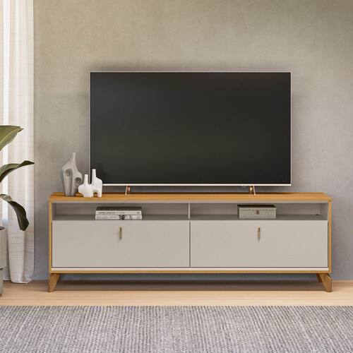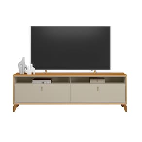 Características: Estrutura: MDP/MDF 2 Portas Puxador de alumínio Dobradiças metálicas Peso suportado: 5 á 40kg Suporta TV até 75 polegadas Com pés em madeira maciça