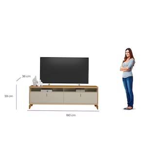 Características: Estrutura: MDP/MDF 2 Portas Puxador de alumínio Dobradiças metálicas Peso suportado: 5 á 40kg Suporta TV até 75 polegadas Com pés em madeira maciça